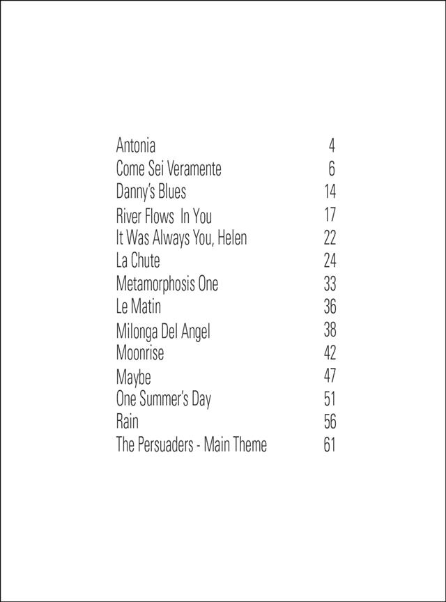 Een mooie verzameling pianomuziek van componisten zoals Astor Piazzolla, Yann Tierssen, Philip Glass, Enrico Morricone en o.a. Giovanni Allevi. De moeilijkheidsgraad is gemiddeld tot gevorderd.